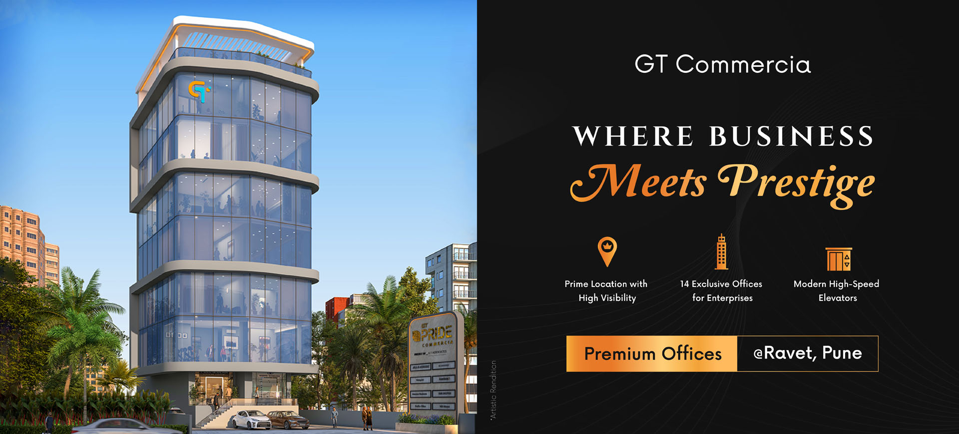 GT Commercia is a commercial project in Ravet, Pune, offering modern office spaces tailored for growing businesses and professionals. Strategically located with excellent connectivity, the project combines functional layouts, contemporary architecture, and essential amenities to create a productive and future-ready work environment.
